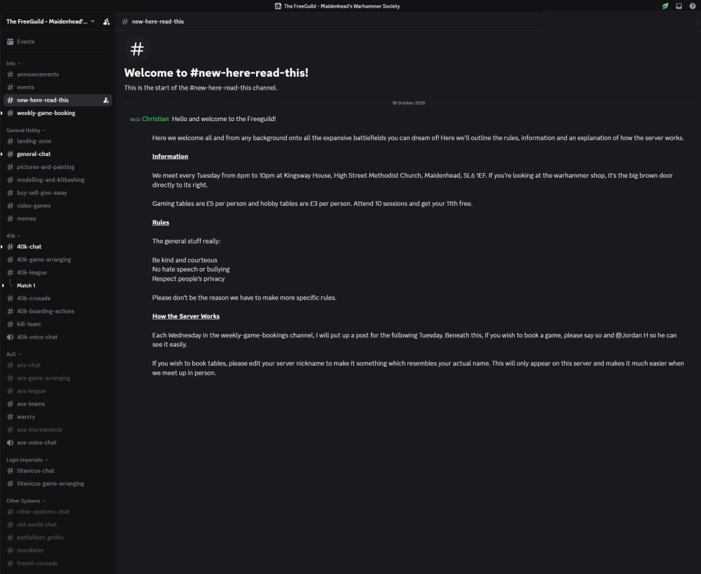- When you join have a read of the ‘new here read this’ channel.